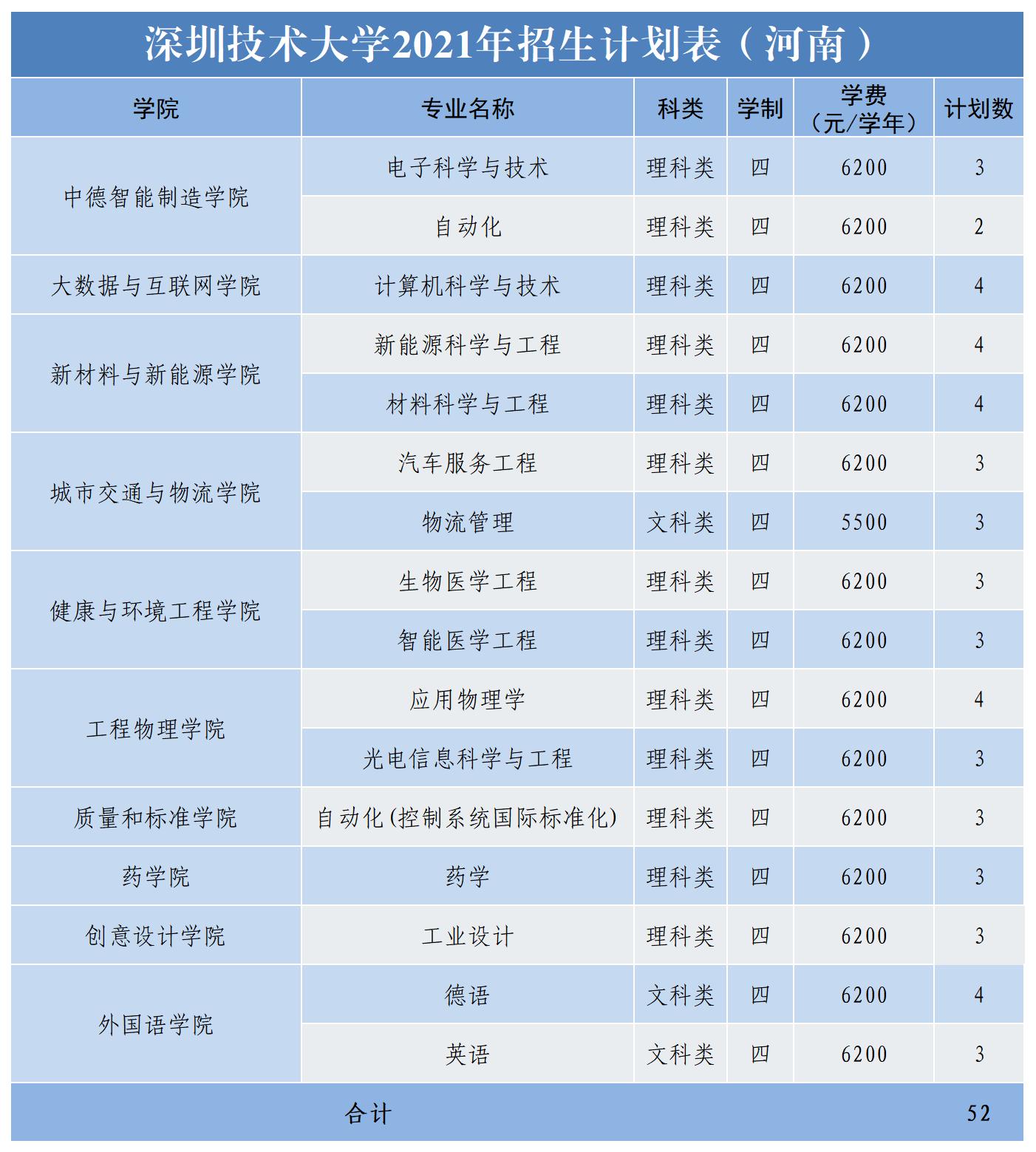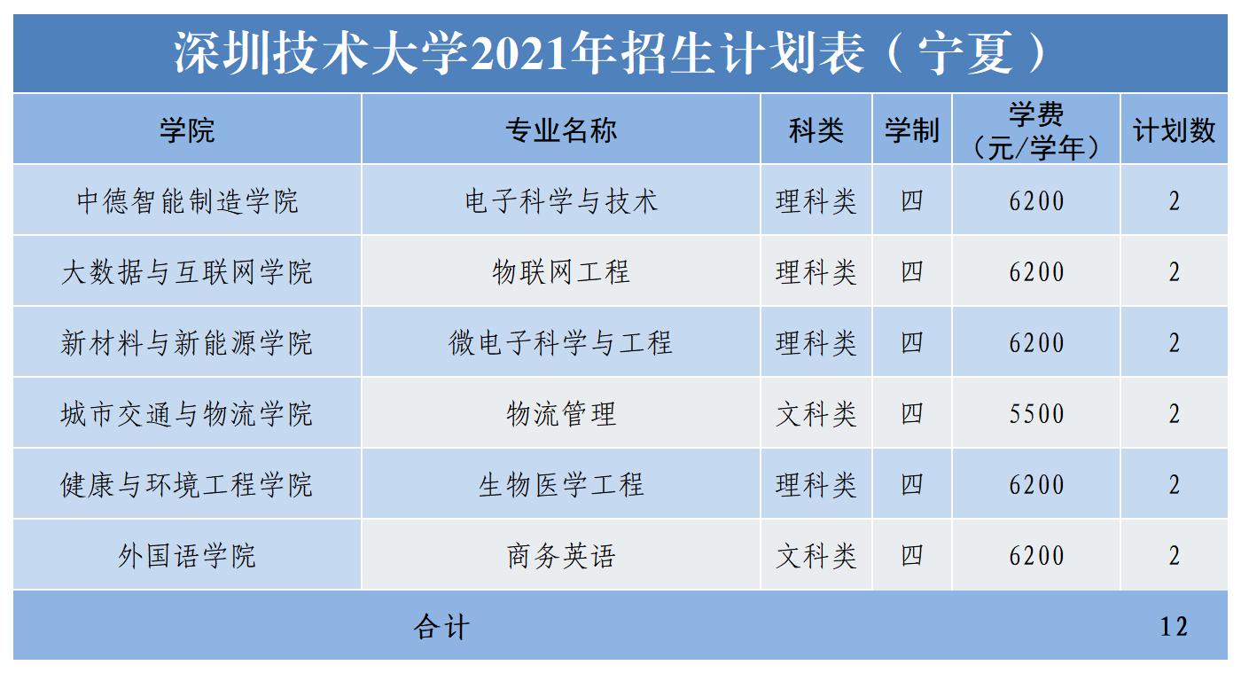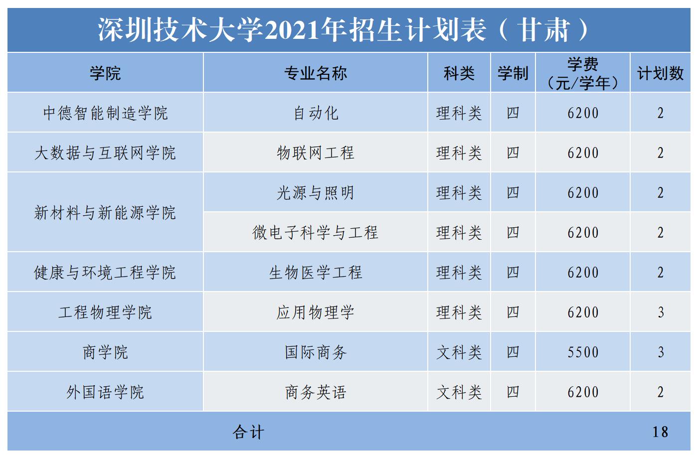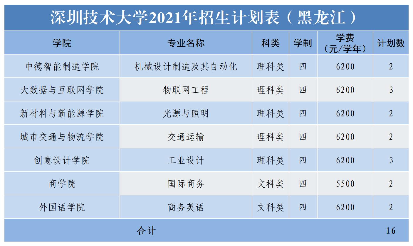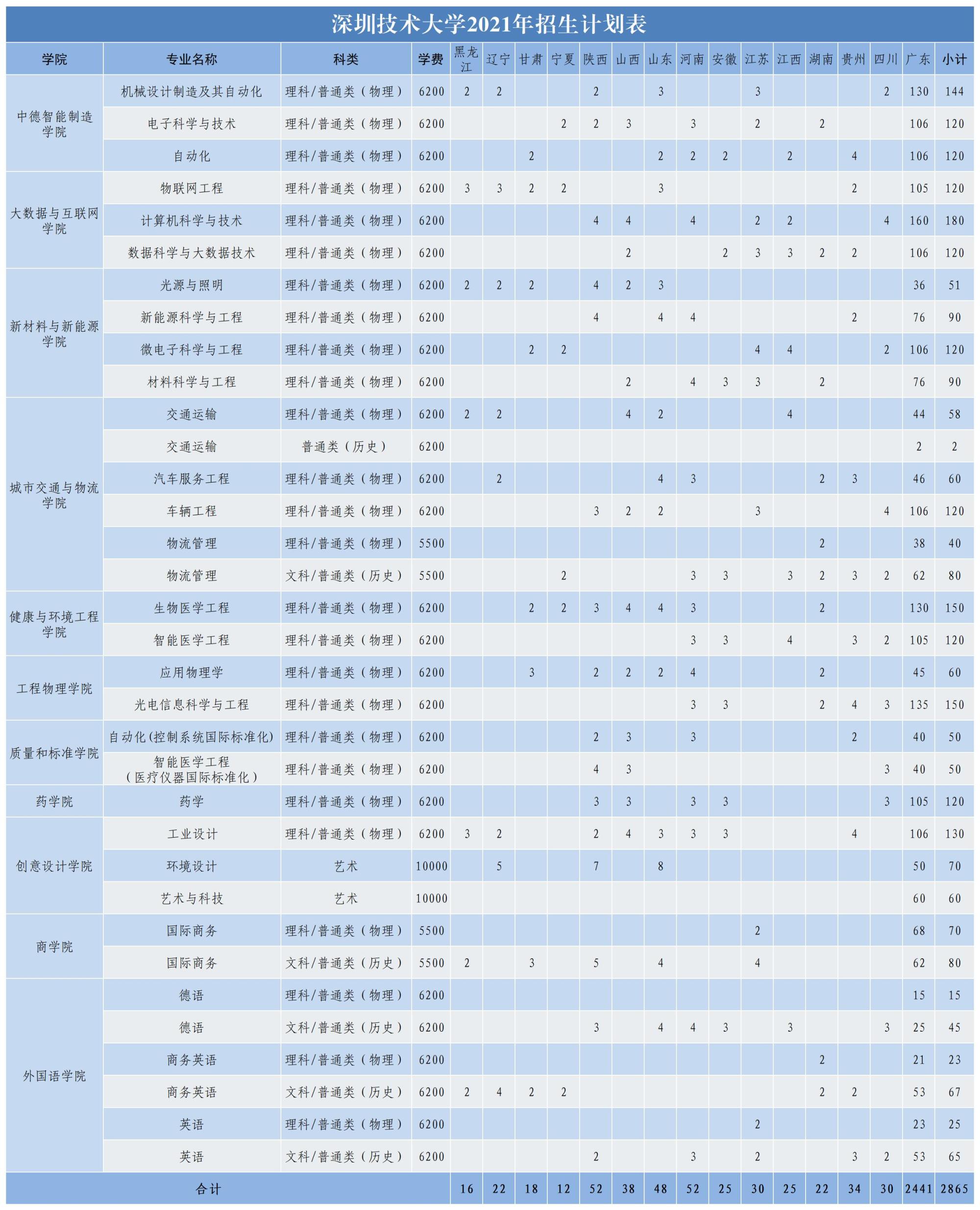 2021年深圳技术大学面向广东、黑龙江、辽宁、甘肃、宁夏、陕西、山西、山东、河南、安徽、江苏、江西、湖南、贵州、四川等十五个省份招生,计划招生2865人。