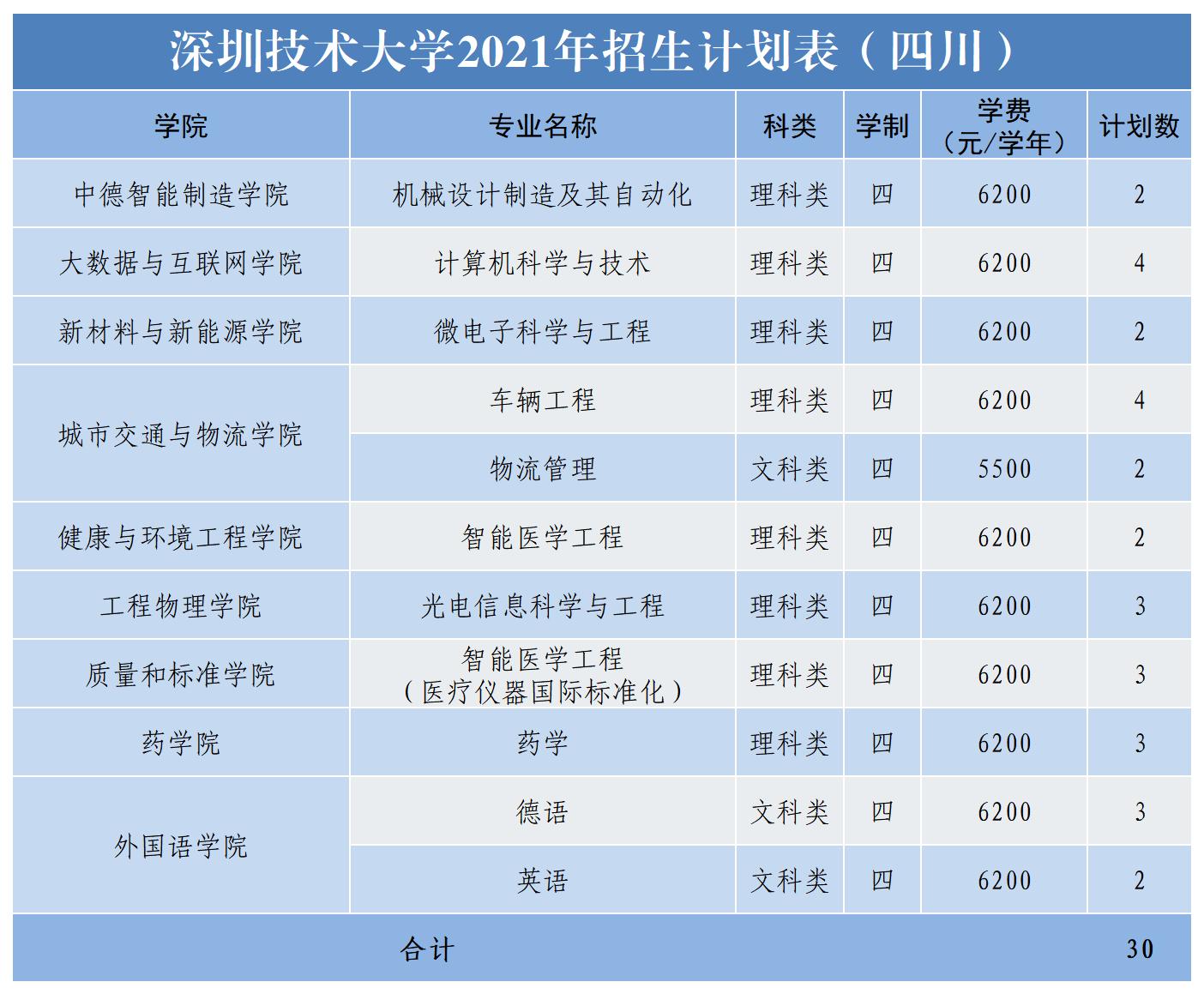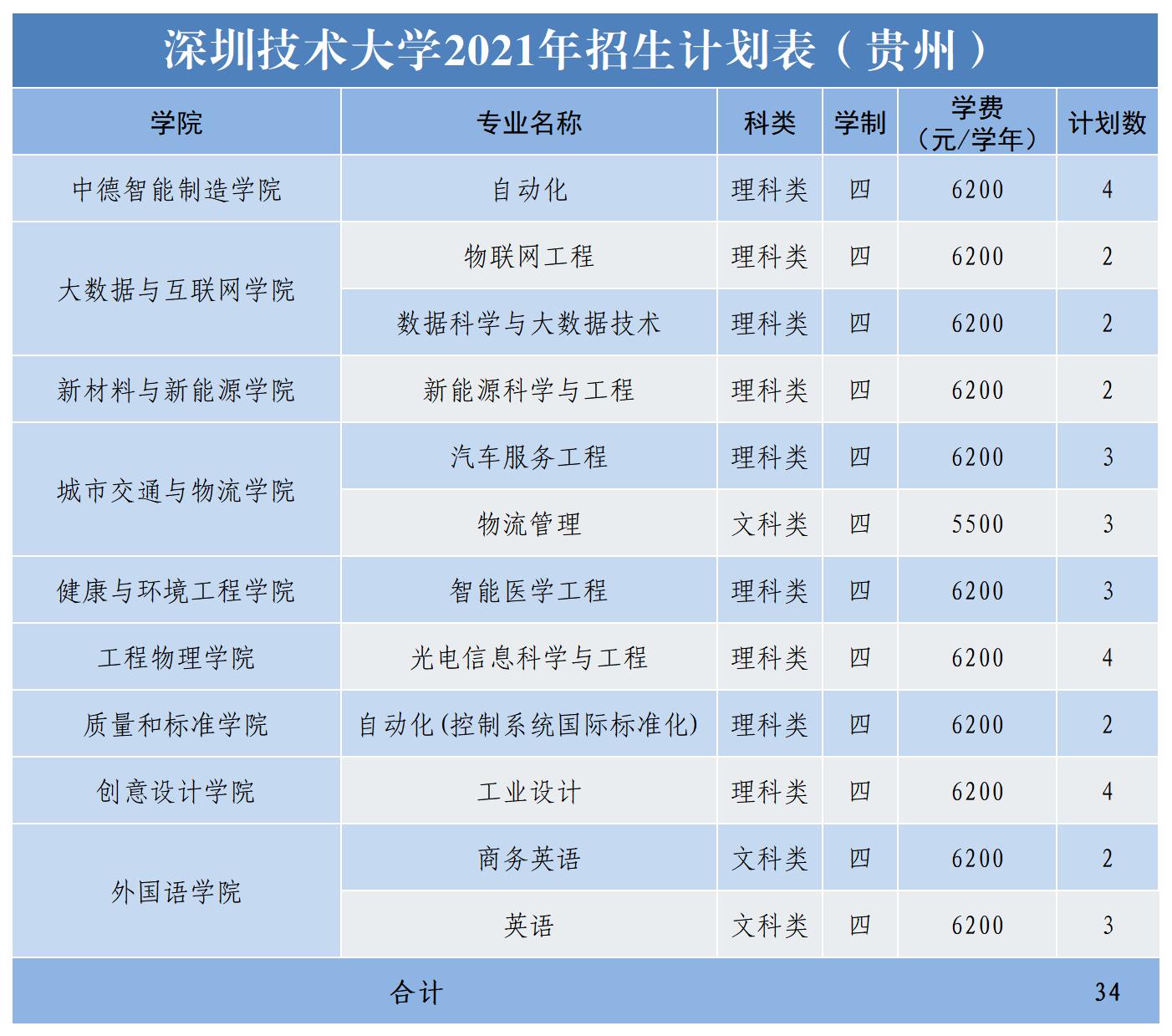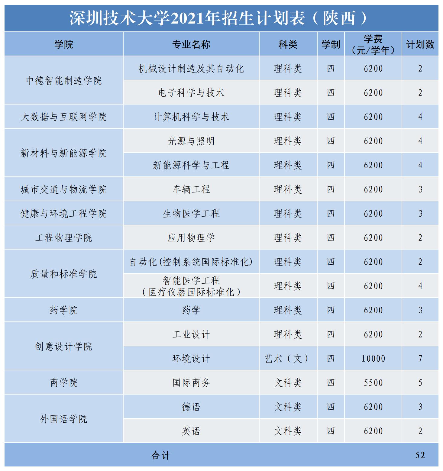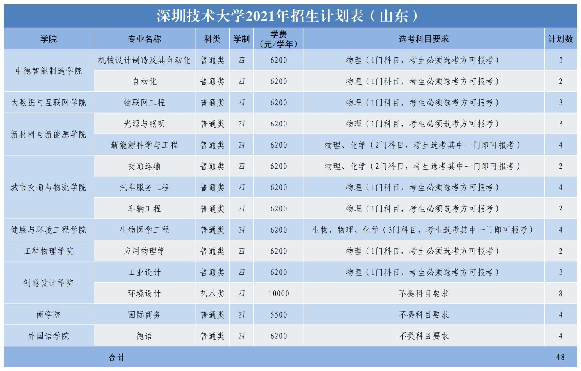 2021年深圳技术大学面向广东、黑龙江、辽宁、甘肃、宁夏、陕西、山西、山东、河南、安徽、江苏、江西、湖南、贵州、四川等十五个省份招生,计划招生2865人。