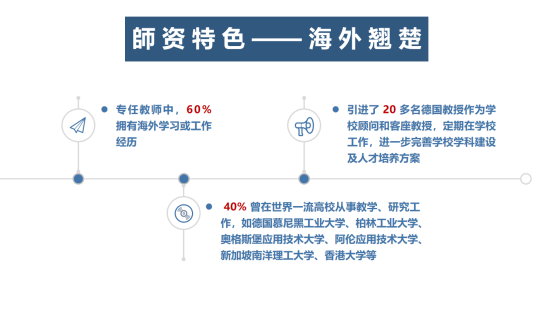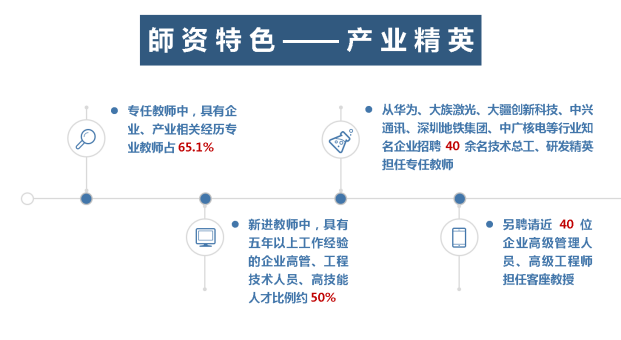 答:深技大目前的专任教师中,具有企业、产业相关经历专业教师占65.1%。从华为、大族激光、大疆创新科技、中兴通讯、深圳地铁集团、中广核电等行业知名企业招聘 40 余名技术总工、研发精英担任专任教师。此外,还引进了 20 多名德国教授作为学校顾问和客座教授,定期在学校工作,进一步完善学校学科建设及人才培养方案。