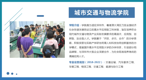 答:深技大今年共有8个学院招生,分别为中德智能制造学院、大数据与互联网学院、新材料与新能源学院、城市交通与物流学院、健康与环境工程学院、创意设计学院、商学院、工程物理学院。开设6个专业11个方向。具体情况如下图: