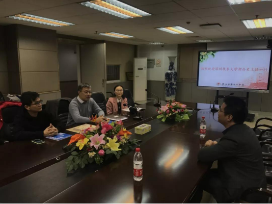 12月27日下午,深技大招生办协理副主任史本超老师、姜钧翊老师来到广州市第十六中学进行招生宣传。与十六中的王勇副校长和杨乐科长等诸位老师进行了座谈,座谈中双方增进了对彼此的了解。王勇对深技大的培养模式表示赞同,并提出希望能在合适的时间组织十六中教师到深技大参观交流。