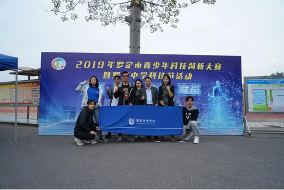2019年11月29日,我校图书馆刘慕琦老师和刘浩老师带领中德智能制造学院和大数据与互联网学院的学生组成高科技产品展示小组,参加了云浮罗定市青少年科技创新大赛的现场展示活动。
