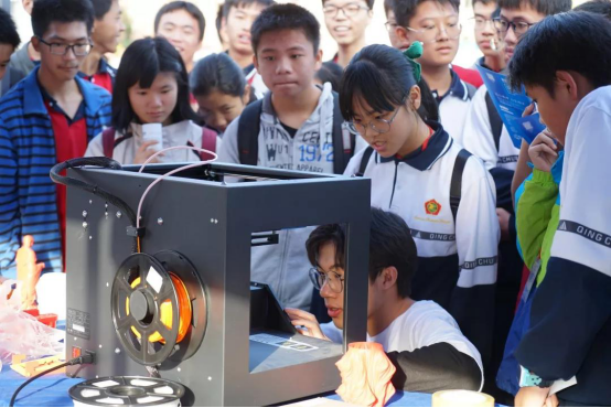 在展示活动中,深技大学子用3D打印机、机械臂、无人机等向师生展示时下流行的高科技产品,为他们带来一场可见可感可体验的科技秀。