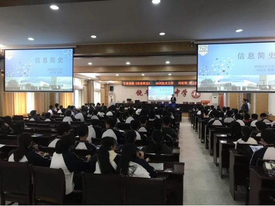 随后,刘宏伟为该校学子带来一堂题为“信息简史”的讲座。讲座反响热烈,饶平二中学子在讲座后踊跃发言,纷纷提问。