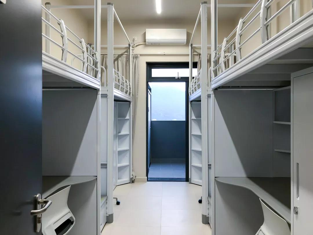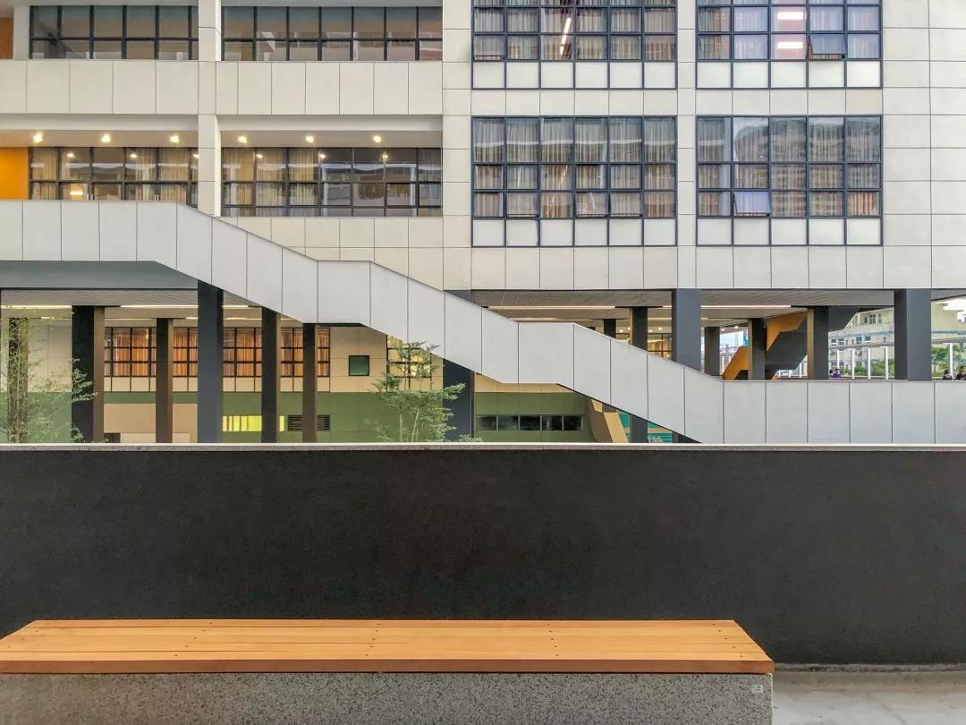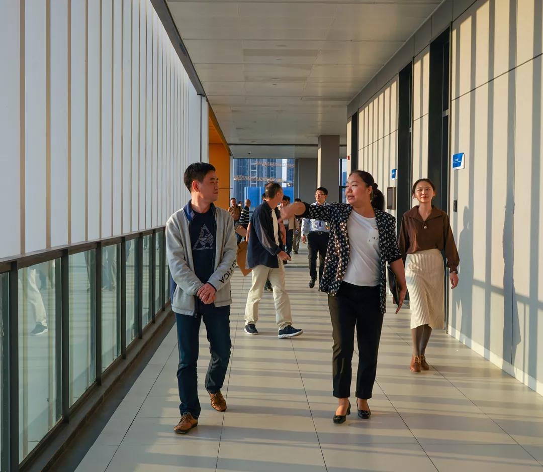 参观完宿舍后,通过宿舍二层的连廊前往食堂继续参观。