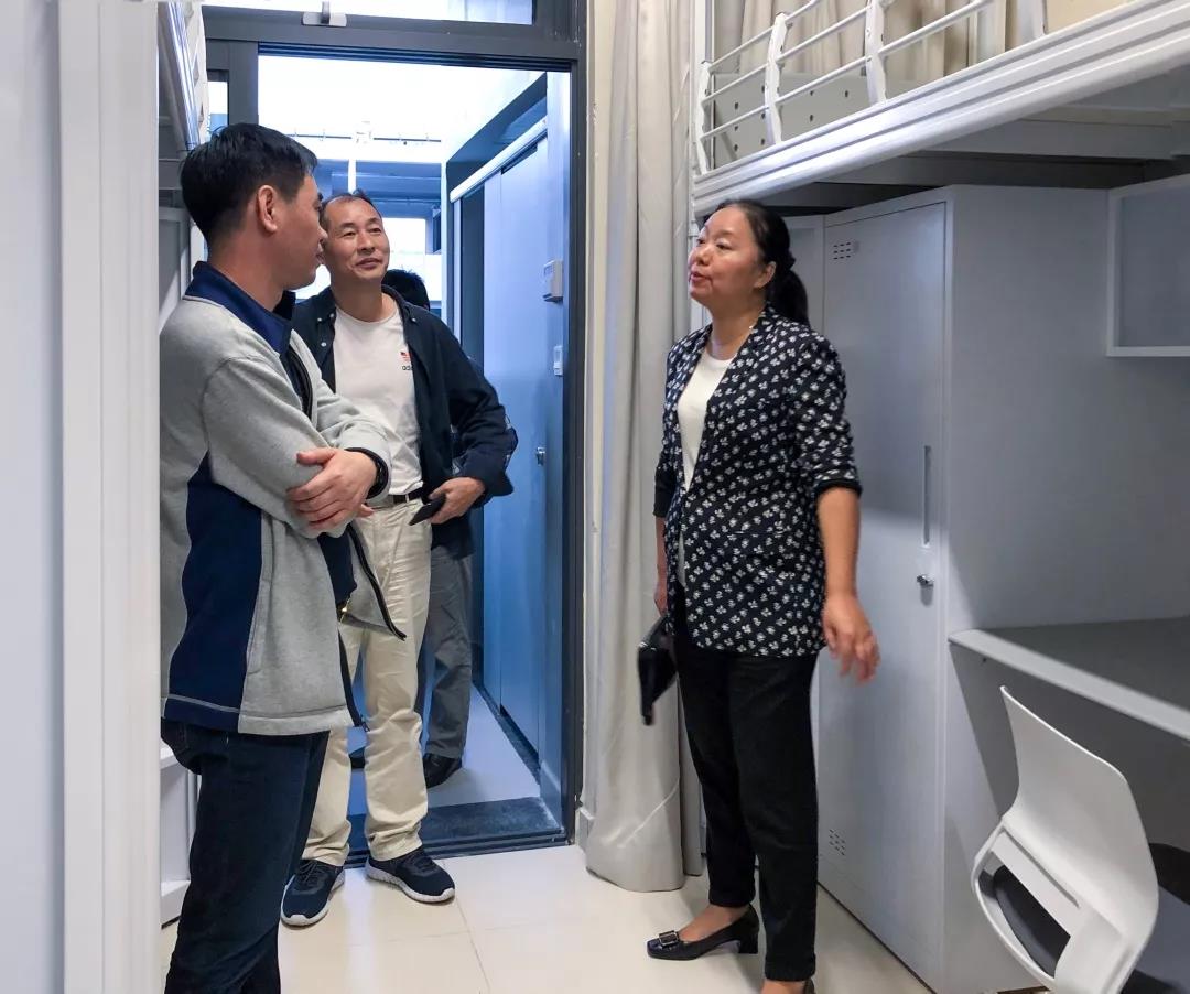 张岩鸿及宿舍工作人员为来宾详细介绍了宿舍的设施和条件。