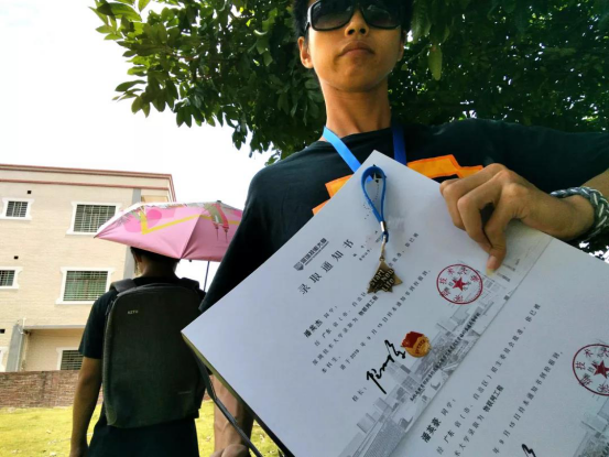 手中的通知书是高中三年的汗水与付出,是努力是回报。欣喜之余赶紧将各项“战利品”一一取出,背包、雨伞、手链应有尽有。然后把她们摆好造型拍照发空间,此时“咔擦”一声于我之前响起,转身康康,是我的爸爸妈妈。我家到深圳要2929km,但不管我在哪里我的父母都在我的身后支持我,鼓励我,在这里我想说蟹蟹你们。