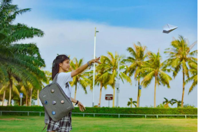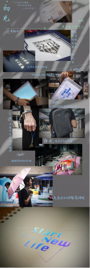 纸飞机承载着我的梦想飞向深技大,让我在深技大遇见更好的自己,书包上的星球徽章是本新生探索员的宣言,向未知的宇宙无限进发。
