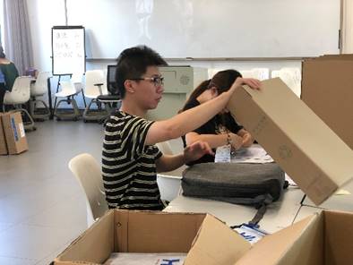 8月2日,收到“技大背包”成品后,招办全体老师以及学生助理火速到位,大家做好分工,流水线作业,一人管好一件材料,避免出错。