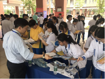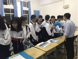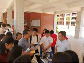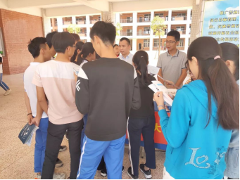 5月10日,基建部邱泽枫老师,计划财务部许畅绅老师先后前往潮州南春中学、五华水寨中学、五华田家炳中学设置摊位进行招生宣传,通过派发宣传册、宣传物资,及时、全面地向学生介绍我校师资、专业以及校园环境、校园建设等相关情况。