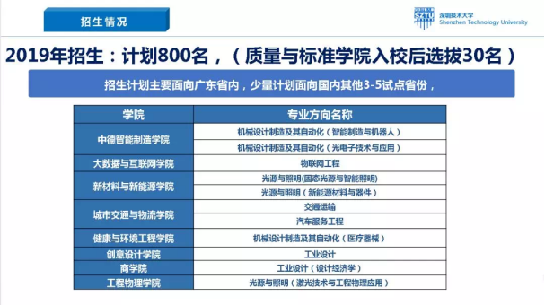 答:深技大今年面向全国招收800人。主要面向广东省内,少量计划面向国内其他3至5个试点省份,具体情况确定后将于深圳技术大学官网、本科招生网、深技大官方微信公众号及招生办公众号等平台发布。
