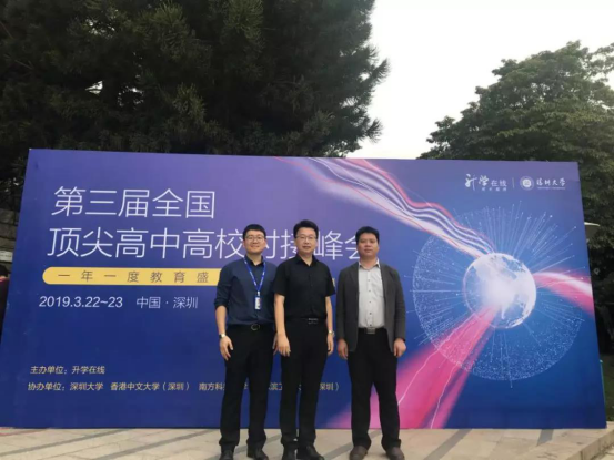 3月22日,我校教务部兼招生办主任刘宏伟教授、招生办协理副主任史本超老师、招生办严锐帆老师和姜钧翊老师一行参加了在深圳大学召开的升学在线第三届全国顶尖高中高校对接峰会。