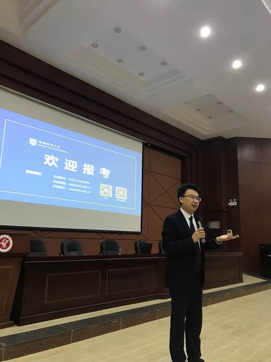 1月8日,教务部主任兼招生办主任刘宏伟教授为广东两阳中学带来新年首场“名师进中学”讲座。400余名高一、高二理科重点班的学生参加此次讲座,讲座由两阳中学教务处林振远主任主持。因为参与的学生众多,讲座安排在学术报告厅进行。