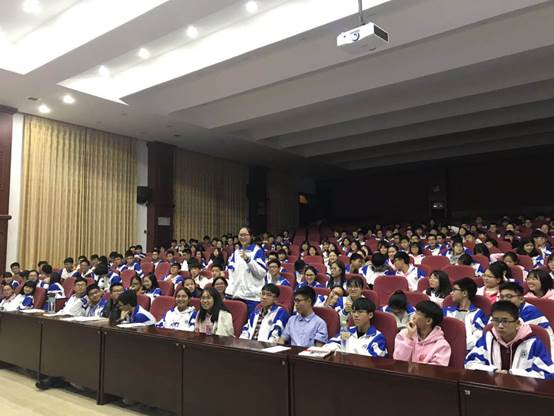原定一个小时的讲座已延长至一个半小时,同学们依然意犹未尽,不愿离去。