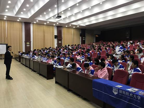 刘宏伟教授深入浅出地讲述了信息技术的起源和发展历程,从文字的诞生、纸张的发明、印刷术的推广、电话电报技术的出现、现代计算机技术的发展直到当今最前沿的芯片技术、5G通信、人工智能、物联网、信息安全等信息技术的重要知识,内容丰富详实,通俗易懂。同学们虽然刚刚结束了一整天的学习,有些疲倦,但依然兴致勃勃,认真听讲,时而点头,时而思索。刘宏伟教授生动、风趣的讲授不时引得同学们哄堂大笑或又恍然大悟,勾起了他们对信息科学技术的浓厚兴趣。讲座最后,刘宏伟教授介绍了深圳技术大学的情况,欢迎大家踊跃报考。