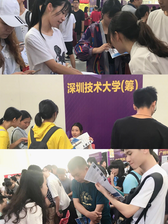 6月28日,由佛山日报社主办的2018佛山高考志愿填报咨询会在陈村花卉世界展览中心举行,省内外逾120所高校和教育机构参会,深圳技术大学(筹)佛山招生小组的老师前往现场,为考生及家长答疑解惑。