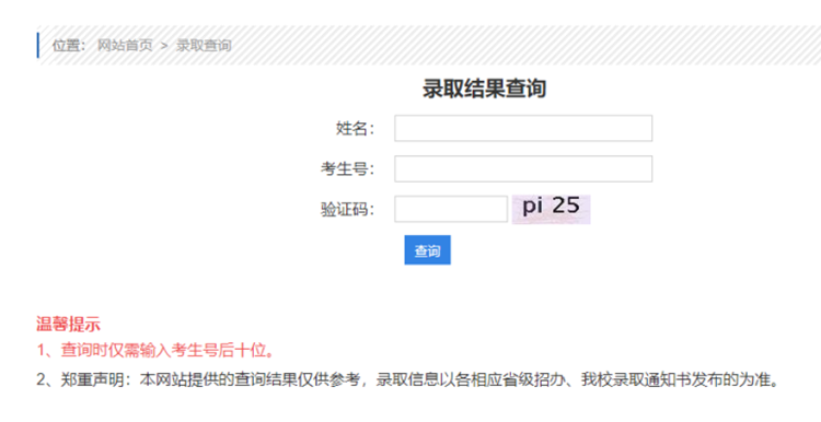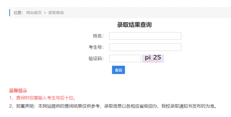 2.郑重声明:本网站提供的查询结果仅供参考,录取信息以各相应省级招办、我校录取通知书发布的为准。