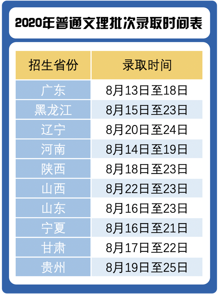 8月19日,广东(理科和艺术)、黑龙江、河南、宁夏。