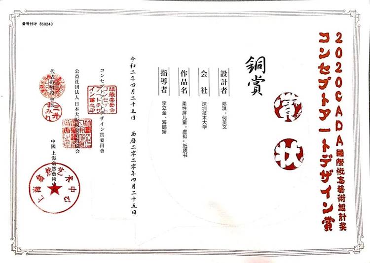 深技大学子喜获日本 2020 CADA 国际概念艺术设计大奖: