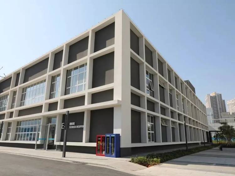 公共教学楼已经竣工并于2019年9月顺利投入使用,共五层六翼,公共教学楼层高四米,中央空调室内全覆盖。共200多间教室,能满足1.9万名学生的上课需求。