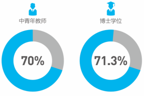 专任教师中青年教师(30岁-49岁)占近70%,具有博士学位的占71.3%,各类高层次人才64人,各大学院学科带头人均由国内外同行公认的国家级高层次人才担任。