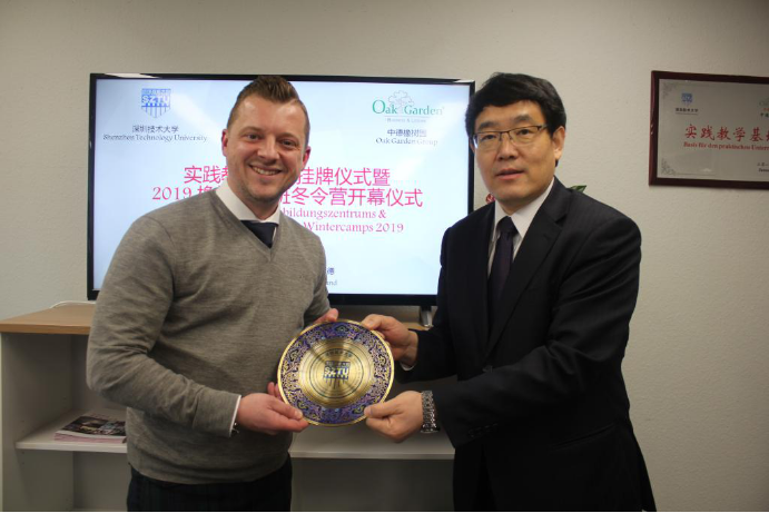 德国当地时间1月20日下午,深圳技术大学(中德橡树园)实践教学基地挂牌仪式暨2019橡树人才班德国冬令营开班仪式顺利举办!中德橡树园集团执行总裁Andreas Scholz先生、侯计香女士,深圳技术大学负责人阮双琛等出席仪式。