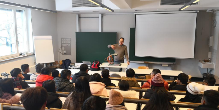 付朗兹·拉普斯教授在为同学们做日程介绍和奥格斯堡应用技术大学的介绍