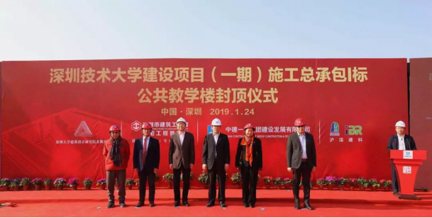 1月24日,深圳技术大学永久校区公共教学楼顺利封顶,深圳市建筑工务署署长乔恒利、深圳技术大学负责人阮双琛、中建一局集团建设发展有限公司总经理王连峰、深圳大学建筑设计研究院有限公司吴家骅教授等出席封顶仪式。公共教学楼由中建一局集团建设发展有限公司承建,总建筑面积为51830平方米,各类型教室及办公室共200余间,可满足1.9万学生上课需求。深圳技术大学师生及家长代表、施工方代表出席了此次封顶仪式。