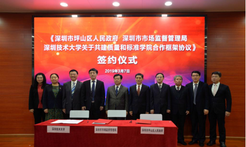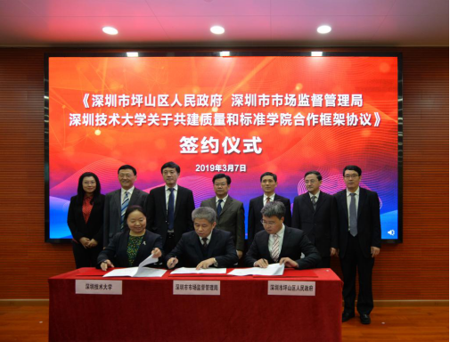 3月7日,深圳技术大学举行质量和标准学院揭牌仪式,该学院由深圳市市场监督管理局、坪山区人民政府和深圳技术大学合作共建,未来将集聚国内外质量和标准专业优质资源,推进质量管理和标准化课程进本科教育,培养本地质量管理和国际标准化人才,打造国家国际化标准人才培训基地。