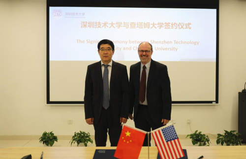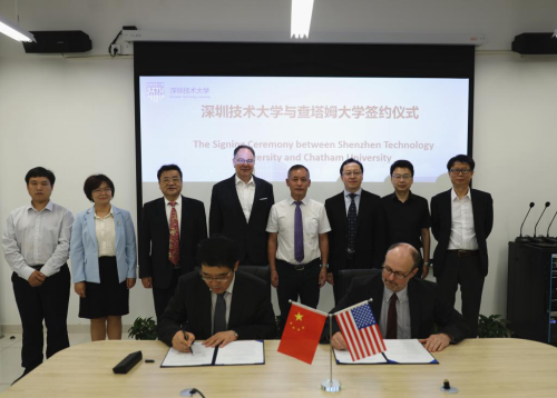 3月22日上午,美国查塔姆大学(Chatham University)校长大卫·芬格尔德博士(Dr. David Finegold)与中育贝拉国际教育集团总裁李松博士等一行到访深圳技术大学,与学校主任阮双琛、副主任徐刚及相关学院、部门领导进行了座谈。双方签署合作备忘录,未来将在学生交换学习等方面加深合作。
