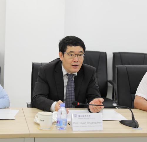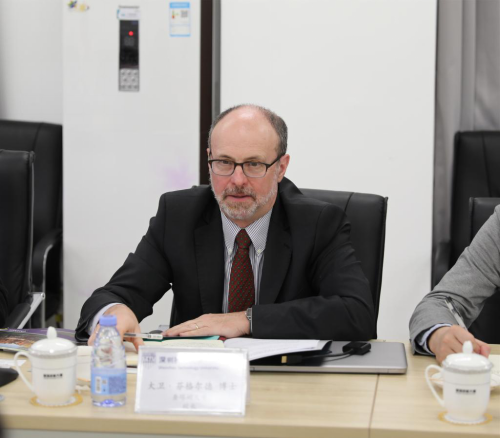 座谈会上,阮双琛主任向芬格尔德校长一行的到来表示了热烈的欢迎,并详细介绍了学校学科设置、人才培养模式、师资力量、招生情况等基本概况。阮双琛主任表示,目前,深圳技术大学已与德国、瑞士、美国等国多所国外高校、机构签署合作备忘录,每学期选派学子赴合作高校交流实践,定期开设短期国际课程,邀请合作高校教授前来授课或举办学术讲座;同时举办了2018国际周及高水平应用技术大学论坛等系列文化交流活动,全方位培养学生国际视野。深技大期待今后与查塔姆大学进一步开展合作,深入推进学生国际交换学习、教职工交流等活动。