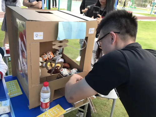 丰富的社团摊位挑战看似简单,可不是那么容易通关的。DIY创想社纯手工制作的娃娃机看似简单,可是难倒了不少同学。