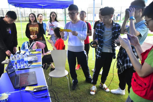 科幻天文协会摊位上的天文望远镜以及VR体验让深技大学子过足了科技瘾。