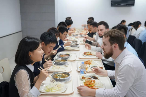 中午,中瑞师生在大族激光公司饭堂共进午餐。大家欢聚一堂,畅聊早上参访大族激光的不同感想。瑞士学生分享着这几天在深圳期间的行程经历,纷纷表示很开心有机会和深技大学子们共同参观中国知名企业和面对面交流。同时,他们对于中国的高科技的迅猛发展感到敬佩。