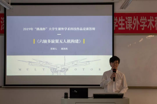 4月9日,深圳技术大学首届“挑战杯”全国大学生课外学术科技作品竞赛决赛在启动校区11号楼顺利举行。本次比赛共12支队伍、12个科技创新项目参赛,为大家带来了一场精彩的思维碰撞与技术对决。4月16日,本届“挑战杯”校赛结果出炉,经过激烈的比拼,由刘泽鸿及赖迅杰同学设计的六轴多旋翼无人机脱颖而出,获得一等奖。