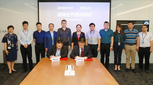 5月16日,深圳技术大学与深圳市腾讯计算机系统有限公司正式签订战略合作协议,未来双方将携手共建学院、设立联合实验室,定期举办腾讯T派暑期夏令营,支持深技大学子加入“腾讯犀牛鸟精英人才培养计划”等,在人才培养、科研合作、信息化建设等领域开展深入合作。腾讯副总裁兼腾讯云总裁邱跃鹏,腾讯云副总裁张纾翔,深圳技术大学副主任张岩鸿等出席签约仪式。