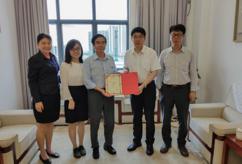5月16日,汪正平教授应深技大新材料与新能源学院之邀,来我校进行学术访问。深技大主任阮双琛会见了汪正平教授,并详细介绍了学校的建设情况和办学理念。汪正平教授对我校的建设速度和独具特色的办学理念高度认同。随后,阮双琛主任为汪正平教授颁发了客座教授聘书,希望未来汪教授在学科建设、科研与人才培养等方面为学校多提宝贵意见与建议。