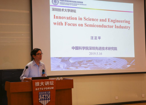 近日,美国工程院院士、中国工程院外籍院士、美国佐治亚理工学院董事教授、中国科学院深圳先进技术研究院首席科学家汪正平教授(Prof. C. P. Wong)接过深技大主任阮双琛颁发的聘书,受聘为我校客座教授。当天下午,汪正平教授还应邀在“技大讲坛”开讲,为我校师生带来了一场题为“聚焦半导体行业的科技与工程创新”的精彩讲座。