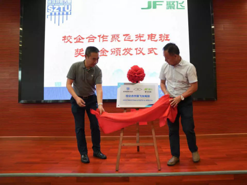 随后,双方代表为聚飞光电班揭牌。