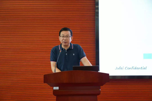 深圳市聚飞光电股份有限公司总经理高四清介绍了公司的基本情况,他指出,在聚飞公司的发展战略中,排在第一位的便是人才战略,聚飞公司十分看重对人才的培养,而聚飞班是很好的合作方式,希望未来双方能在校企联合、实习基地建设、科研等方面开展更深入的合作,为国家培养更多高层次创新人才做出贡献。