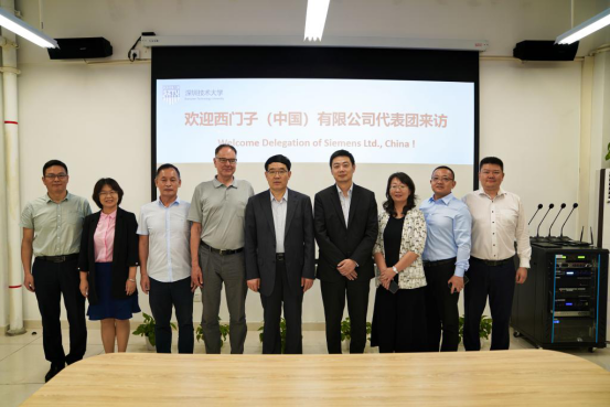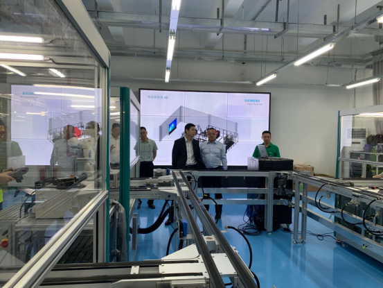 6月13日,西门子(中国)有限公司高级副总裁商慧杰先生率西门子(中国)有限公司高级政府事务总监何伟女士、西门子(中国)有限公司工业业务领域华南大区广东及海南销售总监胡翔先生等一行来访深圳技术大学,与深技大校长阮双琛共商合作事宜,并一起参观了由西门子中国自动化公司与深技大合作共建的工业4.0智慧工厂。深技大副主任徐刚、城市交通与物流学院院长Franz Raps、中德智能制造学院副院长王红志及国际合作与学生工作部负责人曾思予等陪同参与座谈。