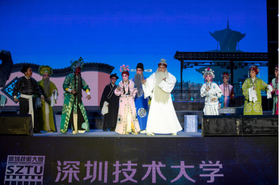 晚上七时,学校运动场搭起了高高的舞台,迎接来自陕西省渭南市华州区剧团的60余位演员。深圳市教育工委书记、教育局局长陈秋明,深圳市教育局副局长王水发,坪山区副区长、公安分局局长宋逸阳,渭南市华州区政协主席王强国,渭南市华州区常委、副区长王育红,渭南市华州区政协副主席刘毓斌等嘉宾受邀出席。深圳技术大学党委书记张基宏,校长阮双琛,党委副书记、纪委书记张岩鸿,副主任徐刚及学校全体师生观看了演出。