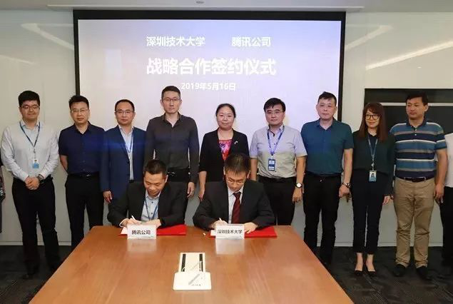 5月16日,深圳技术大学与深圳市腾讯计算机系统有限公司正式签订战略合作协议,未来双方将携手共建学院、设立联合实验室,定期举办腾讯T派暑期夏令营,支持深技大学子加入“腾讯犀牛鸟精英人才培养计划”等,在人才培养、科研合作、信息化建设等领域开展深入共合作。