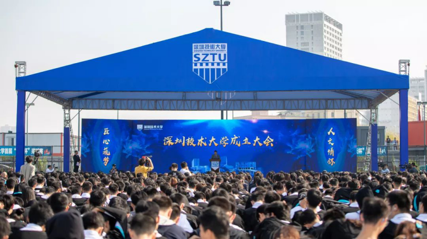 11月27日上午,深圳技术大学成立大会在学校运动场隆重举行,各方贵宾及全校师生约2600人共同见证。广东省委副书记、深圳市委书记王伟中,国家教育部规划司副巡视员楼旭庆,广东省教育厅副厅长邢锋,深圳市委常委、宣传部部长李小甘,市委常委、秘书长高自民,副市长王立新,坪山区委书记陶永欣,区委副书记、区长李勇,市市场监管局局长邝兵,市建筑工务署署长乔恒利,市教育局副局长许建领,深圳大学校长李清泉,南方科技大学党委副书记李凤亮,深圳技术大学党委书记张基宏,校长阮双琛,党委副书记、纪委书记张岩鸿,副主任徐刚出席成立大会。深圳各高校代表,合作企业代表及多家媒体受邀参加。成立大会由王立新副市长主持。