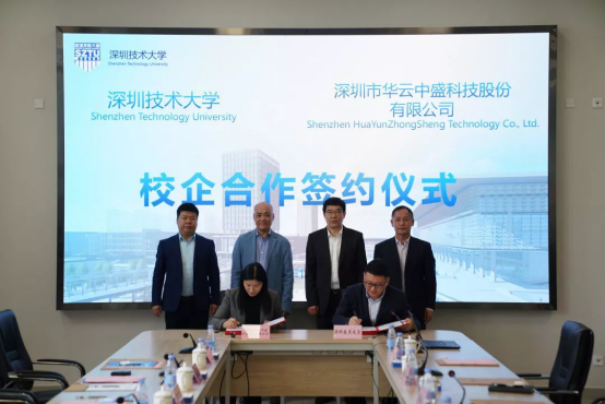 随后,双方代表签署了校企合作战略框架协议。根据协议,深圳市华云中盛科技股份有限公司与深圳技术大学将在优势互补、互惠互利、发展共赢的基础上,共同探索、构建和实践“以产业实际需求为牵引、以学科发展规律为约束、以市场为导向、以企业为主体、产学研用深度融合的协同创新体系”。