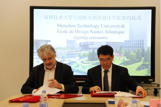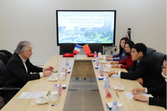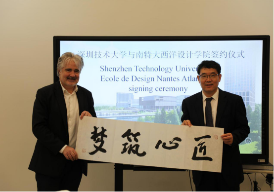 1月9日,法国南特大西洋设计学院校长克里斯蒂安·格勒林一行到访深圳技术大学,与深技大校长阮双琛等进行座谈。在座谈会上,双方签署合作谅解备忘录及“3+1+2”本硕联合培养协议,并就未来合作展开深入探讨。