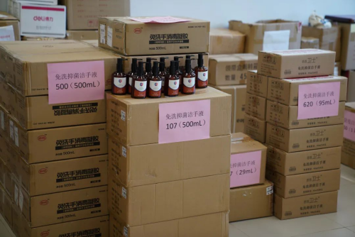 学校通过自行采购、教育部门配发、爱心企业捐助等,现已基本确保各类防疫物资阶段性使用需求。学校现设有防疫物资专用库房,储备了大量防疫配套物资,其中消毒液、消毒粉预计可使用3个月以上,各类规格消毒酒精可使用46天以上;同时配备有测温枪、护目镜、防护衣、乳胶手套、雾化式空气喷雾剂等配套防疫物资。为做好餐饮服务,学校还储备了一批一次性打包盒,方便师生打包外带。