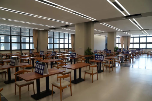 学生食堂实行单向出入,严格划分出入路线,由北侧门进入、送餐具回收后从南侧门离开,减少人员往返交叉。