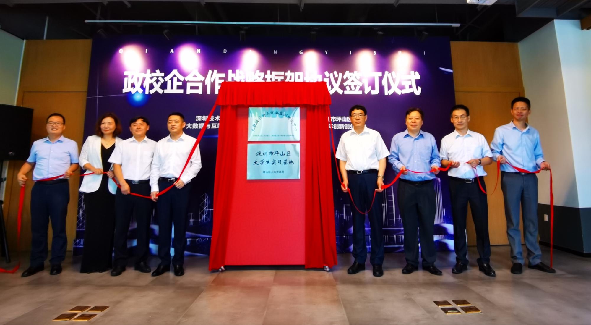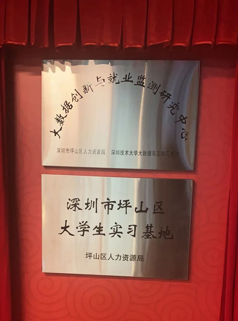 签约仪式后,与会嘉宾共同为“大数据创新与就业监测研究中心”“深圳市坪山区大学生实习基地”揭牌。