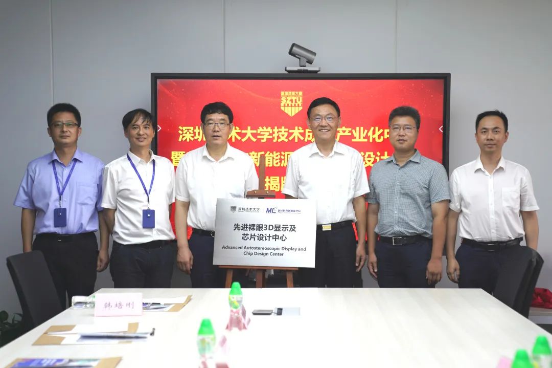 李勇、阮双琛、陈华平、黄鸣、陈增源、王树晓共同为先进裸眼3D显示及芯片设计中心揭牌
